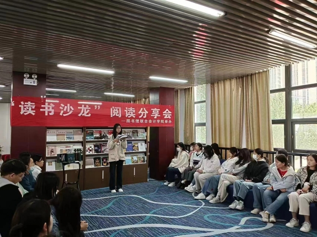 4月25日下午,校图书馆联合会计学院于图书馆怡心苑开展第五十二期读书沙龙活动。本期读书沙龙活动由商学院22电商本4班李文戈为同学们分享以“成功只有一个——按照自己的方式去度过人生”为主题的《俗世奇人》。本次活动参与人数共计七十余人。